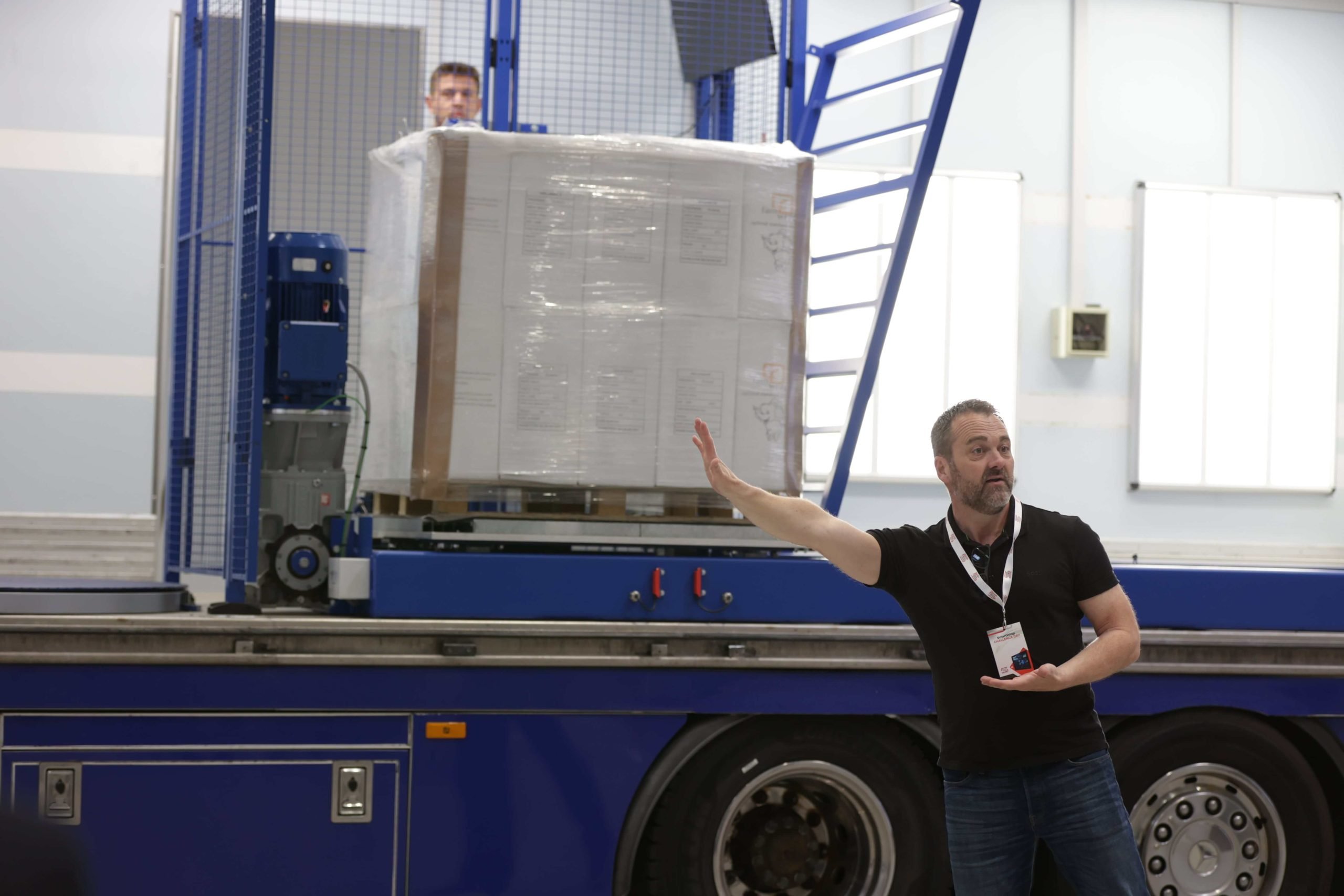 Participanții la Caravana SmartWrap Challenge Day pot asista la testarea în condiții reale a celor mai moderne soluții de ambalare a paleților în folie stretch.